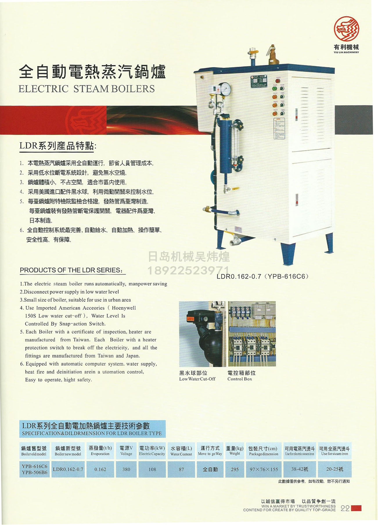 有利牌YPB-616C6全自動(dòng)電熱蒸汽鍋爐108KW