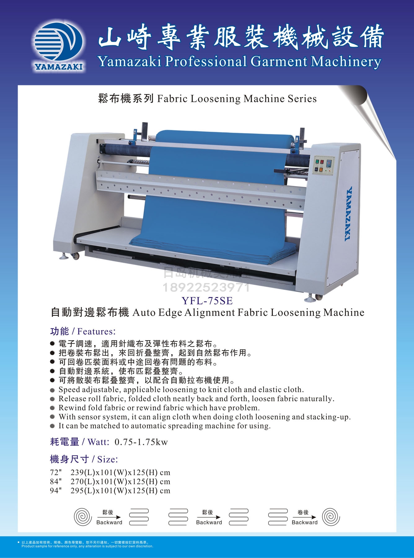YAMAZAKI YFL-75SE Auto Edge Alignment Fabric Loosening Machine