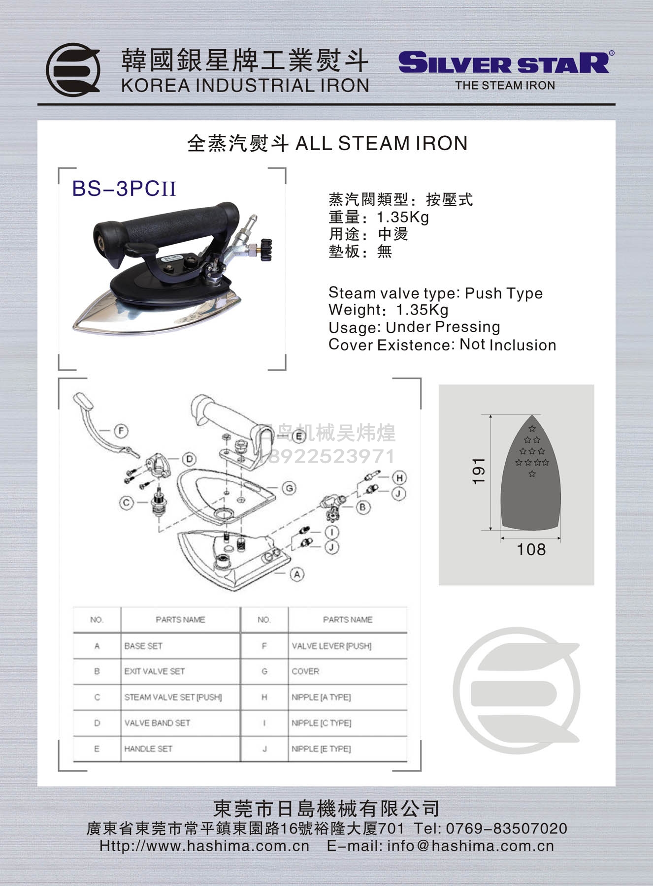 產(chǎn)品名 SILVER STAR銀星牌全蒸汽燙斗/熨斗
