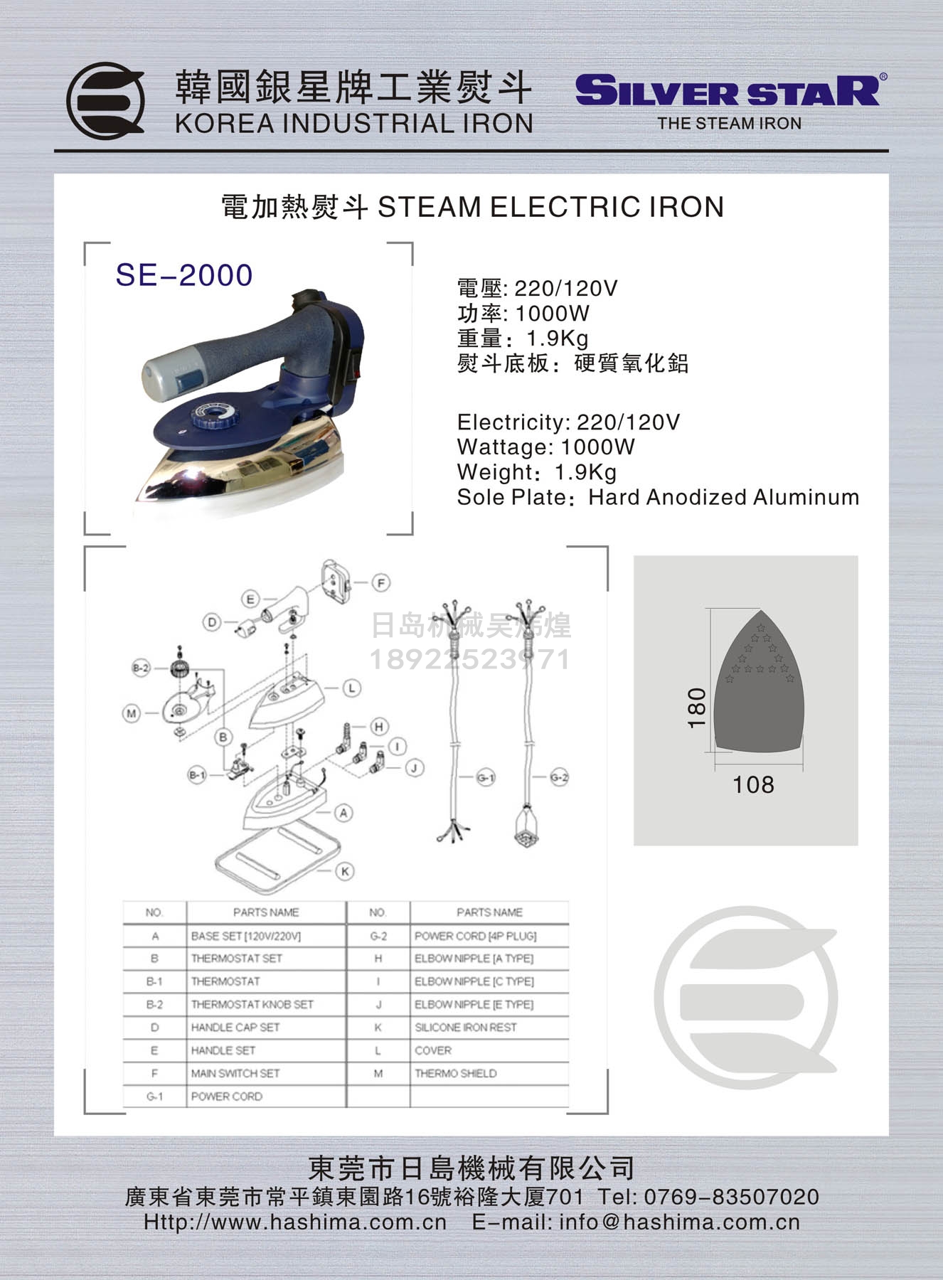 SILVER STAR銀星牌電加熱燙斗/熨斗SE-2000