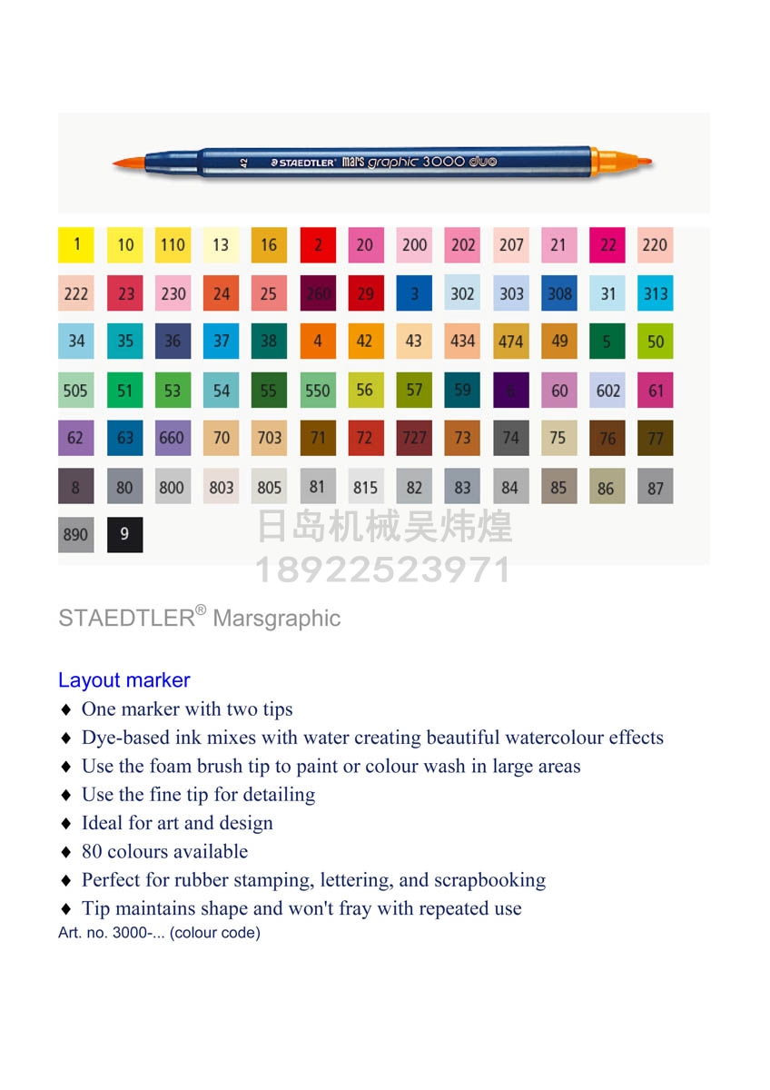 | 產(chǎn)品名 | 德國施德樓STAEDTLER MARS 3000補色筆/修色筆/畫(huà)紗筆/幻彩筆/化妝筆 |