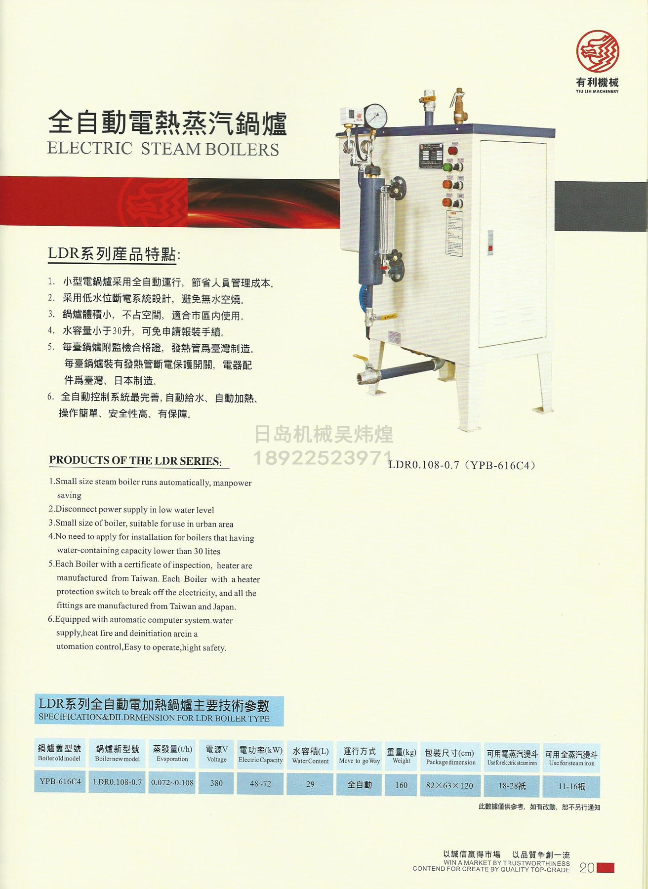有利牌YPB-616C4全自動(dòng)電熱蒸汽鍋爐48-72KW