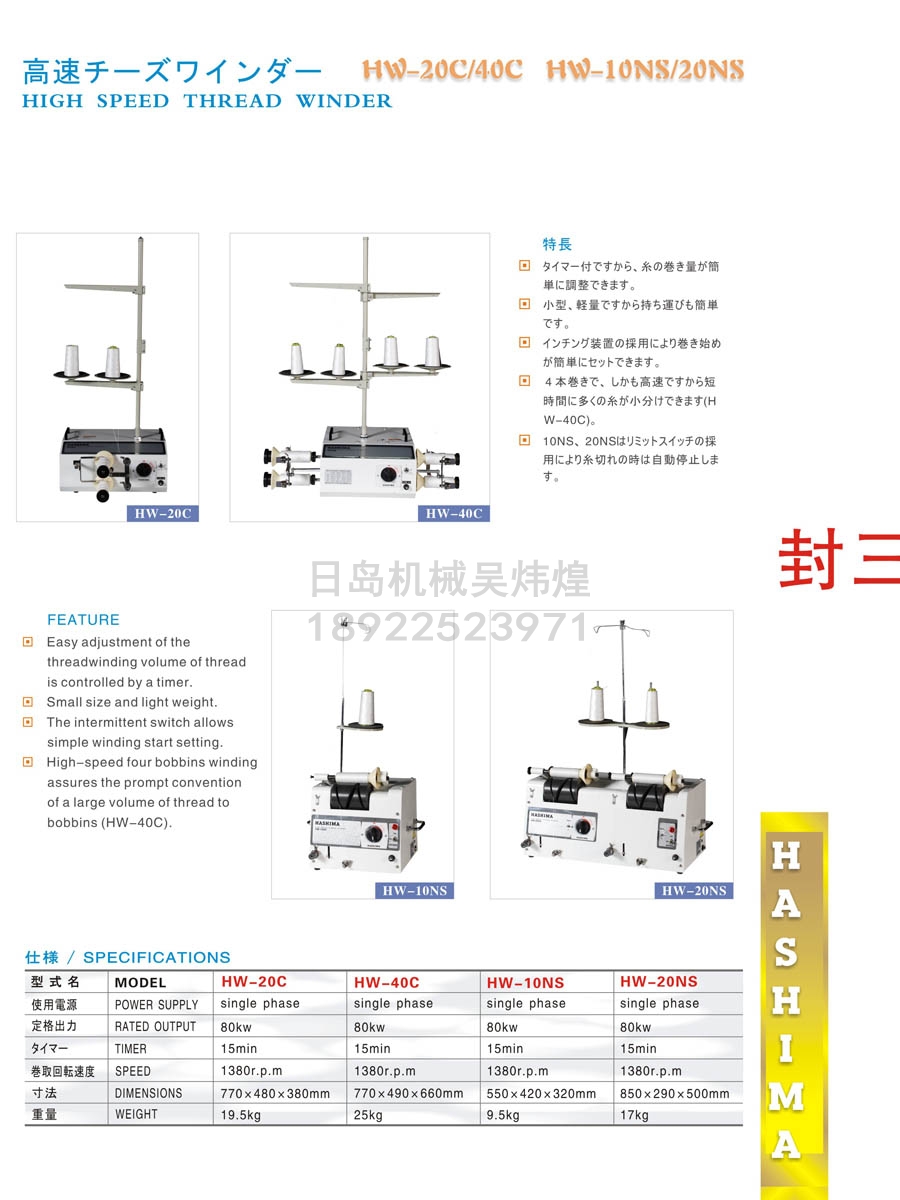 • 羽島HASHIMA HW-20C/HW-40C/HW-10NS/HW-20NS高速繞線(xiàn)機/分線(xiàn)機